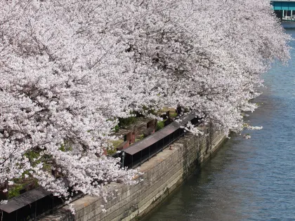 天満橋・八軒家浜船着場を出航し、造幣局や南天満公園の桜並木を眺める