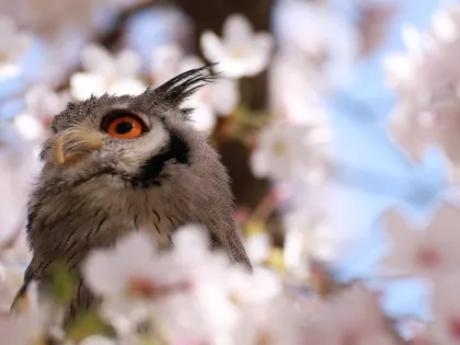 近くのフクロウカフェのかわいいフクロウさんが時折、散歩にきています。桜を楽しみながら、川沿いに歩く「水辺のさくら回廊」は毎年開催されています🌸