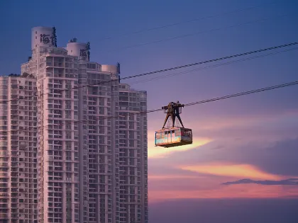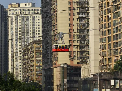全長1,160mの「空飛ぶバス」と呼ばれるロープウェー。長江の上空から市街地や船の往来を一望でき、夕暮れから夜にかけての景色は特に絶景です。