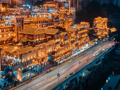 | 夕方〜夜 | 幻想的な夜景を満喫 | 洪崖洞(ホンヤードン) ・提灯やライトアップで幻想的に輝く人気スポット。映画の世界のような風景。 長江ロープウェー ・川を渡りながら市街地の夜景を一望できる必体験アクティビティ。 ナイトクルーズ ・長江と嘉陵江を巡るクルーズ。光に包まれた重慶の街並みを水上から堪能。旅の締めくくりに最適。 |