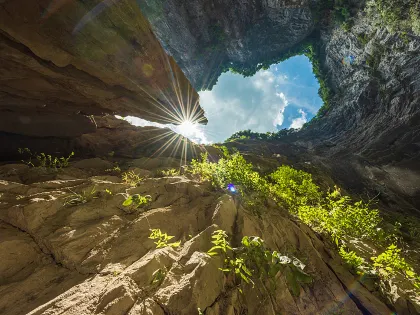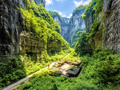 ユネスコ世界自然遺産・武隆カルスト国家地質公園の名所。巨大な岩橋「天生三橋」、鍾乳石が美しい「芙蓉洞」、断崖と清流の「龍水峡地縫」など、大自然の迫力を満喫できます。