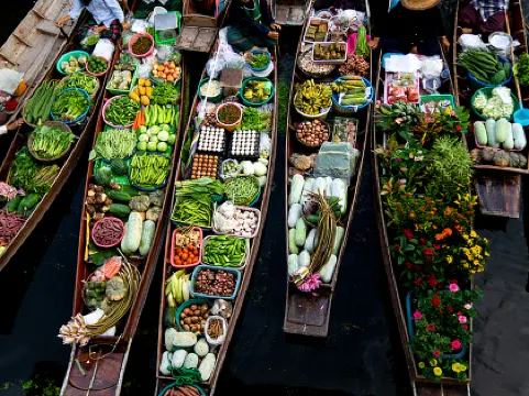 チャトゥチャック・ウィークエンド・マーケットでは、手作りの工芸品や屋台グルメが並び、地元の人々との交流を楽しめます。また、ダムヌンサドゥアックの水上マーケットでは、ボートで運河を巡りながら特別な体験ができます。