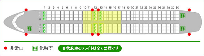 また、12列目と13列目は非常口座席です。この座席をご利用のお客さまには、万が一の際に客室乗務員の指示に従って、緊急脱出のサポートをお願いする場合があります。