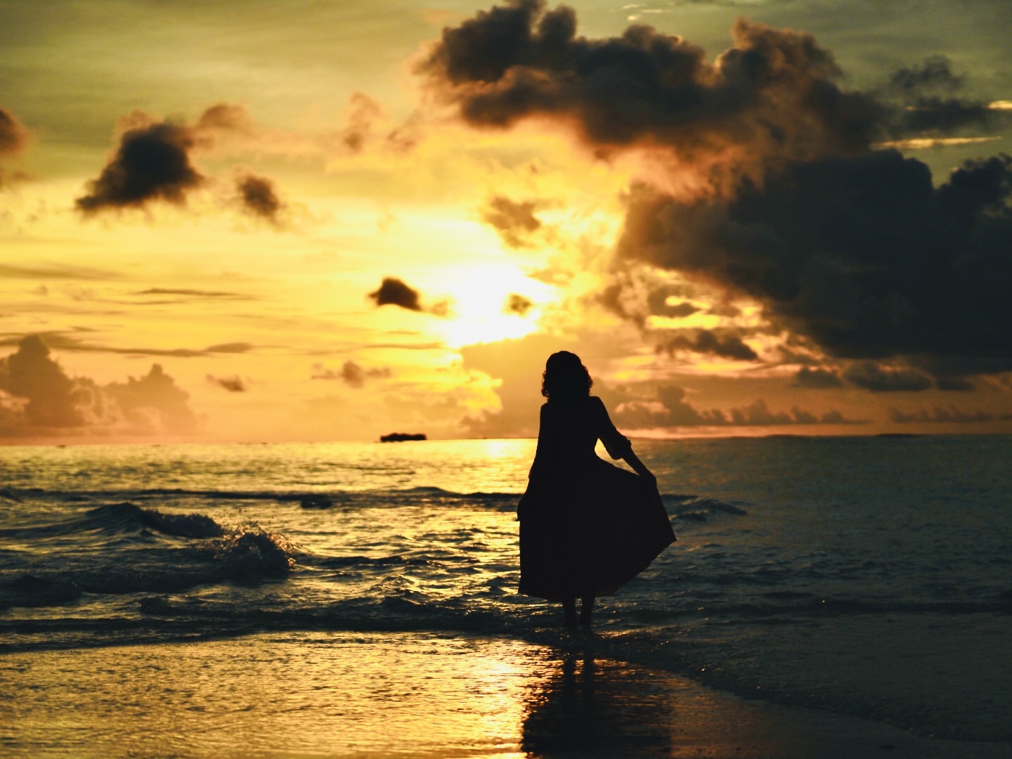 部屋から徒歩5分のビーチは砂浜も美しく、好天に恵まれたら水平線に沈み夕日が見れます。