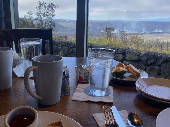 キラウエア火山を目の前に頂く朝食は素晴らしいです。今回3度目の宿泊ですが、また泊まりたいと思えるホテルです。