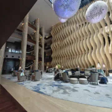 事前の期待は非常に高かったこのホテル。騒音対策として高層階の部屋を特別にリクエストしていたにもかかわらず、まさかの騒音があり、しかもその発生源はホテル内部でした。具体的には、壁の防音性が低く、廊下の話し声が部屋に筒抜けだったこと。そして、午後には工事の音まで聞こえてきたことです。 そこで部屋の変更を申し出たところ、Ctrip(シートリップ)のカスタマーサービスを通じてフロントに連絡してもらいました。その後、カスタマーサービスからは部屋の変更が可能になったと連絡があったのですが、フロントの太った男性スタッフは、顔も上げずに「What happened, sir?」と一言。まるで他人事のような口ぶりでした。私が「カスタマーサービスと御社のマネージャーに連絡済みです」と伝えても、「聞いていない」との一点張りでした。 そこで、カスタマーサービスから彼に直接電話で話してもらうよう手配し、彼が電話を終えた後、さらにマネージャーに確認した結果、私への返答は「本日は満室のため、部屋の変更はできません」というものでした。しかも、最初から最後まで謝罪の言葉は一切なく、不愉快極まりなかったです。その上、彼は「カスタマーサービスには連絡せず、明日朝フロントに来てくれればいい」とまで言い放ちました。そんな態度の方に、明日またお願いする気になれるはずがありません。 ルームサービスも同様で、物を届けるのが非常に遅く、非常に腰が重く、何度も催促が必要な対応でした。 唯一良かった点は朝食で、レストランのスタッフはフロントのスタッフよりもはるかに親切で好感が持てました。