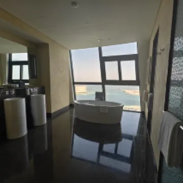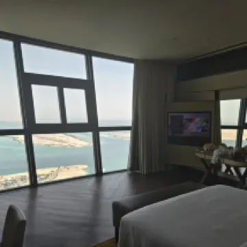 全体的に見て、非常に満足度の高いホテルでした。豪華な設備が備わり、広々とした90平米の1LDKの部屋、そしてプライベートビーチへのアクセスも便利。次回アブダビを訪れる際も、ぜひまた泊まりたいと思えるホテルです。 ロケーション&交通:アブダビ大統領宮殿からわずか1kmの距離にあり、向かい側にはエミレーツパレスホテルが位置しています(残念ながら見学する時間はなかったのですが、遠目に見てもその豪華さに圧倒されました)。午前中にはヤス島行きの無料シャトルバスが運行しており、非常に便利でした。 環境&体験:当日は12時に到着しましたが、チェックインは1時半からでした(海外ではよくあることかもしれませんね)。チェックインの際、フロントにいた美しい巻き髪の女性スタッフがとても親切で、なんと2部屋もアップグレードしてくれました!超豪華なオーシャンビューとシティビューの1LDKの部屋に泊まることができ、日本の5つ星ホテルにも引けを取らない環境だと感じました。これほど豪華な部屋に泊まったのは初めてで(笑)、私たちが予約したのは数百ディルハム相当だったので、本当に期待以上でした。 プライベートビーチやプールも素晴らしかったです。時間があれば、ぜひ体験してみることをお勧めします。本当に滞在して後悔はありませんでしたし、次回アブダビを訪れる際もまた泊まりたいホテルです。