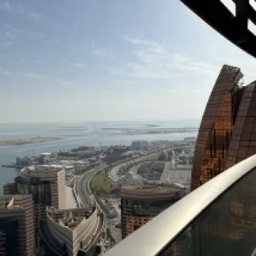 グランドハイアットは本当に素晴らしいです。サービスも良く、フロントではタクシーの手配もしてくれます。ヤス島などの主要観光地へのシャトルバスも出ています。その他の観光地へは車で20~30分ほどかかります。ドバイ行きのバス停までも約20分です。 景色も最高ですが、唯一改善してほしい点は、朝食の品数が、以前宿泊した別の5つ星ホテルと比較して少なかったことです。 次回のアブダビ旅行でも、グランドハイアットを選びたいと思います。