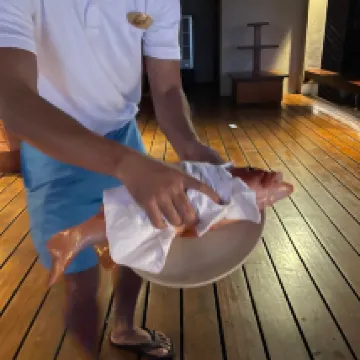 このアマン リゾートには長所もありますが、短所もあります。最高の点は、お客様の体験を本当に楽しいものにしようとしてくれるとても親切なスタッフと、もちろん、とても美しいビーチです。クラブハウスでの朝食を毎回楽しみにしてくれたイアンには特に賞賛を送ります。彼はとても温かく感じがよく、何事にも動じず、彼の朝の挨拶を楽しみにしています。彼は貴重な存在です。私たちはフィリピンの朝食に興味があり、彼とジェロメル、フランコは親切にも、通常は提供されない特別なフィリピン料理とソースを味わえるように手配してくれました。ジェロメルとフランコも素晴らしく、とても感じがよく、この朝食クルーは特別です。リゾートにはギタリストがいて、ビーチでのディナーで演奏するように予約できます。クラブハウスでも夜に演奏しています。彼の名前は思い出せませんが、彼は素敵な声と心地よいフレーズを持っており、彼のサービスは絶対にお勧めです。彼のミンストレリングは夜に魔法をかけてくれます。彼の演奏を撮影したビデオを何度も再生するのが大好きです。妹はスパを頻繁に利用し、マッサージ師のアイリーンとライフスタイル コーチのタニアを高く評価していました。彼女たちは妹の体験を個別にし、妹のニーズに焦点を合わせるために特別な配慮をしてくれました。スチーム ルームとエクササイズ スイートは清潔でした。スパ/ジムの唯一の問題は、バスルームの利用が午前 9 時から午後 9 時までに制限されていることです。スパ/ジムは毎日 24 時間営業していますが、早朝または深夜に行かなければならない場合は、施設から出なければなりません。スパが開いている間は、少なくとも 1 つのバスルームを空けておくべきです。10 代後半から 20 代のカシータに面したビーチは素晴らしいです。水の色は素晴らしく、とても透明です。砂は心地よく柔らかく、白く、細かいです。ほとんどの場合、水は完全に穏やかで魅力的です。波が荒い場合は、アクアティック センターの隣にあるヴィラに面したビーチに向かいましょう。そのエリアは常に穏やかな状態のようです。ここには、オフショア バーもあります。ただし、歩いて行く場合は、サプライズがあるかもしれませんので、覚悟してください。ある日の午後、島を歩き回ったのですが、ほとんどすべてのビーチには人がいませんでした。大きな空っぽのヴィラの 1 つを通りかかったとき、おそらく世界最大級のオオトカゲを目撃しました。体長は 8 フィート以上あったはずです。幸い、私が近づくと、背景に隠れたヴィラに逃げていきました。トカゲは人を避けて歩きますが、それでも初心者にはなかなかの光景です。2 つのビーチ カシータを予約したとき、すべてのビーチ カシータにプールがあると思っていましたが、そうではありません。プールがあるのはほんの一握りのビーチ カシータで、ビーチ プール カシータと呼ばれています。2 つのビーチ カシータの代わりに 1 つのヴィラにできないかと尋ねたところ、それはできないと言われました。予約するときは、この点に留意してください。プールが絶対に必要でなければ、ビーチで十分です。海はとてもきれいで、カシータから歩いてすぐです。私たちは 24 と 25 に泊まりましたが、ロケーションが気に入りました。カシータ自体は少し古いですが