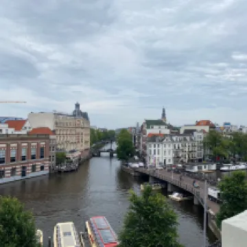 Das Hotel liegt sehr zentral, so das man eigentlich keine öffentlichen Verkehrsmittel benötigt, wenn man gut zu Fuß ist. Es liegt direkt an der Amstel und je nach Zimmer hat man einen schönen Kanalblick. Auch liegt es direkt an einer Straße bei der ab 13/14 Uhr Stau ist. Ob dies immer der Fall ist oder nur weil etwas gesperrt war, wissen wir nicht. Dadurch hat man aber immer einen gewissen Geräuschpegel, auch da das Haus etwas hellhörig ist. Im Zimmer ist alles da was man braucht: Fön, Wasserkocher, Kühlschrank, TV, kostenloses WLAN und Safe. Es ist zwar klein, aber bei den Häusern in Amsterdam typisch und üblich. Das Personal war nett und höflich. Parkplatzservice war auch gut. Das Einzige was uns fehlte war frische Luft. Da die Fenster nicht zu öffnen waren. Wenn man duschte waren alle Fenster beschlagen und die Luftfeuchtigkeit sehr hoch.