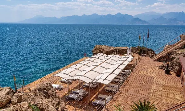 Hotel is very well located, not far from Antalya city center (15min with a taxi). There are also a few restaurants around the hotel. Staff is lovely and very helpful. The room is very modern, with a comfortable bed. Lovely access to the sea, where you can order food and drinks! Overall we had a relaxing time