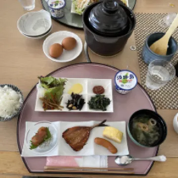 場所は分かりやすい標識と正しい Google ナビで簡単に見つかります。曲がりくねった山道ですが、なんとか行けます(下りる途中で Google が私道に案内してくれましたが、ここでは関係ありません)。建物は素晴らしいです。荷物が多い場合は、車から部屋まで荷物を引きずるのは少し不便です。私たちは大きなスーツケースを車に残し、夜に必要なものだけを持ち込みました。フロントの女性の態度は少し冷たかったです。ただし、布団のサービスはありません。畳の部屋に布団を自分で敷かなければならなかったのには少しショックを受けました。私たちが行った旅館や 2 食付きホテルはすべて、夕食時に布団のサービスを提供していました。また、部屋は寒く、エアコンをきちんと暖めることができませんでした。暖房機能がないのかもしれません。また、その日は風が強かったため、ところどころで大きな音を立てることもありましたが、ありがたいことに、寝る前に誰かが直してくれました。朝食と夕食はまあまあで、食事のサービスも良かったです。