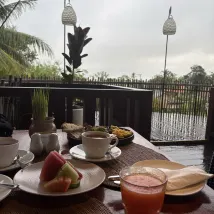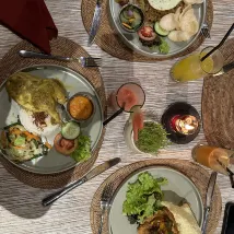 今回のバリ旅行で一番満足のいくホテルです。サービスも良く、部屋も広いです。ホテルの場所は少し離れていますが、1時間前に予約すれば無料でウブドまで車で連れて行ってくれます。ホテル内の食事も美味しく、朝食は紅茶かコーヒー、ジュースやカットフルーツ、主食からお一人様お選びいただけます。何種類か試しましたがどれも美味しかったですが、以前のレビューで誰かが勧めていたワッフルは普通でした。