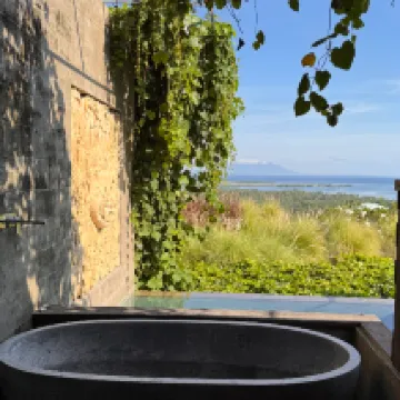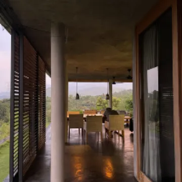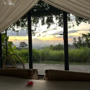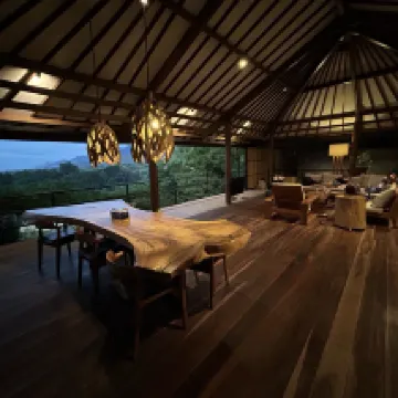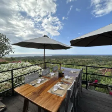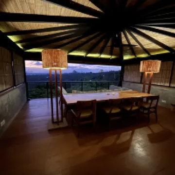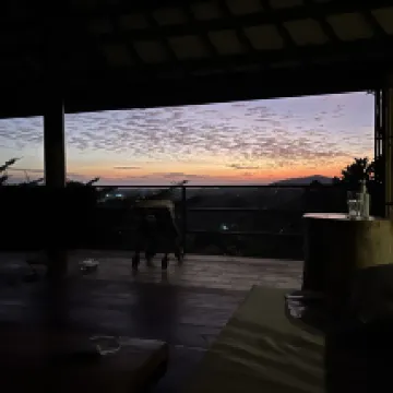 Shared and outdoor bathroom and shower is only downside of this great hillside hotel. And super nice staff every one of them. View from cabins and restaurants are breathtaking.