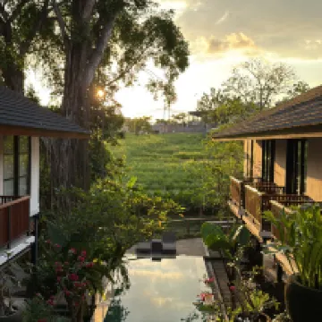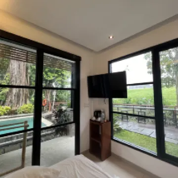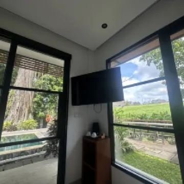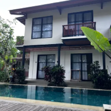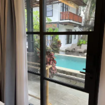 小さくて新しいホテルで、部屋数は多くありませんが、路地を入ったところにあり、とても清潔です。プールが素晴らしく、毎晩泳ぎに行き、ビールを一本買って飲むのが最高でした。 一番良かったのは清潔さで、アリや虫を全く見かけませんでした!遠くには田んぼが広がり、景色もとても美しいです。ホテルのスタッフも皆親切で、出入りするたびに挨拶をしてくれます。近くのカフェも素晴らしく、Wi-Fiが速く、ココナッツジュースが美味しかったです。 ツインルームでしたが、コンセントがたくさんあり、多くの電子機器を充電するのに十分でした。テレビではYouTubeも見られます。トイレが広々としていて、とても気に入りました😘