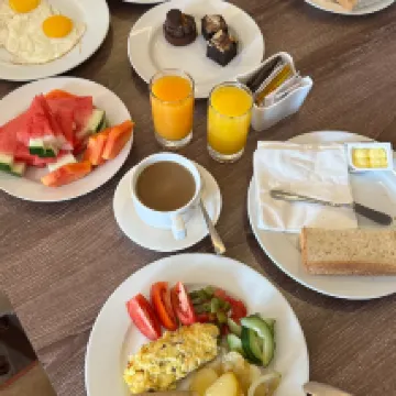 ホテルは一等地ではないにもかかわらず(ビーチまで 5 ~ 10 分)、かなり便利な場所にあります。スタッフはとても親切でフレンドリーです。彼らはきれいに掃除します。タオルは毎日交換されます。朝食はかなりまともです。また来られたら嬉しいです!