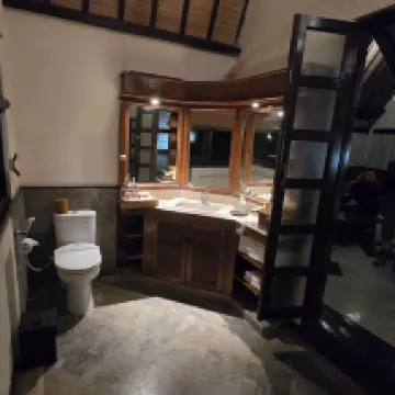 ホテルからの返信: Dear Valued Guest,Thank you for sharing your feedback.We are delighted to hear that you enjoyed the great vibe of our resort and the outdoor shower experience. It’s wonderful to know that this feature added to the uniqueness and comfort of your stay.We truly appreciate your positive comment and look forward to welcoming you back again soon.Sincerely,Hotel Vila Lumbung