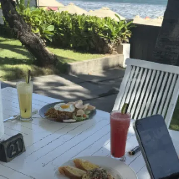 一部の家具は少し古かったですが、お部屋はとても清潔でした。Finns Beach ClubやAtlas Beach Clubへ行く予定の方には、このホテルは完璧な選択肢です。他の場所へ移動する際も、GrabやGojekが周辺にたくさんおり、移動には困りませんでした。お部屋からは素晴らしいビーチの景色が楽しめました。