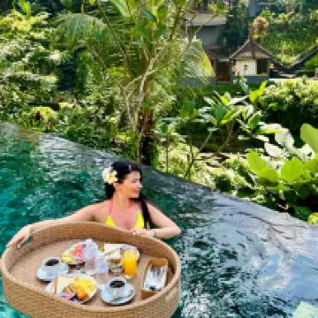 スタッフの皆様、特にチェックインの際に対応してくださった女性スタッフの方には感謝いたします。予約した部屋はガーデンビューと説明されていましたが、実際は隣の建物の壁が目の前に迫る部屋でした。部屋の変更が可能か尋ねたところ、なんと、ちょうどプールの美しい景色が見える部屋が空くとのこと。少し待って部屋の準備ができてから、そちらに移動しました。 朝食は含まれており、メインディッシュ1品、ジュースかフルーツ、コーヒーか紅茶の中から選べました。夕食はルームサービスでメニューから注文することもできました。料理はボリュームがあり、美味しかったです。部屋は毎日清掃されていました。 プールでのフローティングブレックファストも注文可能で、私たちはチェックアウト前の最終日に利用しました。プールでの写真はとても美しく撮れます。 ホテル全体が緑豊かで、敷地は手入れが行き届いています。このホテルをおすすめします!