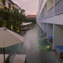 クタビーチまで徒歩圏内で、立地は最高、ルームサービスも良かったです。 プールはそれほど大きくありませんが、人もそれほど多くありません。