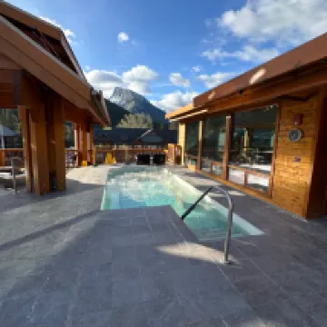 バンフ内のホテルの中で人気のあるホテルなのですが、シーズンなのでかなりリーズナブルな価格で泊まりました。 特にホテルのルーフトップに温水プールとサウナがあり、雪のロッキー山を眺めながら温水プールを楽しめます。最高の経験になると思います。