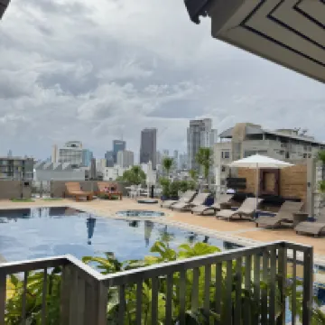 あまり使われていない静かな路地(ソイ)にある素敵なホテル。5泊しました。屋上には素敵なプールがあります。オンヌットBTS駅までは少し歩きますが、近くにはレストラン、コーヒーショップ、コンビニ、コインランドリーなどがあるショッピングエリアがあります。また、ソイからメインロードに少し入ったところにフードコートがあり、そこでは安く食事ができます。唯一の問題は、隣で行われている工事の騒音でした。私は部屋を建物の反対側に変更してもらいましたが、何も問題ありませんでした。