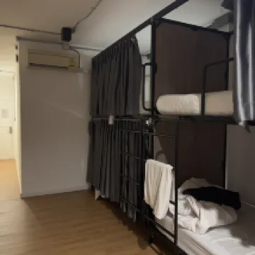 清潔で便利なロケーション。ホステルの目の前にバス停があり、周辺には飲食店や屋台がたくさんあります。各ベッドには快適なマットレスが敷かれ、カーテンと大きなロッカーが付いています。部屋は6人用ドミトリーとしては広々としています。唯一の欠点は、交通量の多い道路に面しているため、車やバイクの音、建物の外の話し声が聞こえることです。耳栓をして寝れば改善されると思います。英語を話すスタッフは親切です。 食事、勉強、仕事に最適な、広々とした快適な共用エリア。洗濯機と乾燥機に加え、洗濯物干し場(手洗い可能)もあります。おすすめの滞在先です!