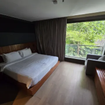 当初予約していたL字型の床から天井までの窓からの眺めは満足できるものでしたが、細かいところが良くありませんでした。例えば、床から天井までの窓は鍵をかけることができず、ぐっすり眠れませんでした。バスタブで入浴することしかできず、水が噴き出して浴室全体が水でいっぱいになりました。足ふきマットは滑りにくいので、滑らないように注意してください。誰もバスタブにしゃがんで入浴したいとは思いません。2日目の夜、ベッドの端にあるヘッドボードの下に大きなゴキブリが這っていました。木材が古くて割れていて、長い間そこに住んでいたゴキブリかもしれないと疑っています。2日目の夜、私は大きなスイートにアップグレードしました。ダイニングテーブルのガラスにはタイ米の粒があり、壁と床にはヤモリの糞がたくさんありました。バスルームとキッチンは2つありました。部屋の上には蜘蛛の糸がたくさんあり、ダブルベッドの真上には3匹の蜘蛛がいます。寝室の化粧台の横には前の住人が残した空のペットボトルがあります。ヘアドライヤーの風は非常に弱く、長時間吹くと非常に暑いので、ヘアドライヤーを持参することをお勧めします。木の床は少し凹凸があり、足の裏を傷つけます。ホテルが用意したスリッパは表面が酸化してまだらになっているので、履きたくないです。数日後、ホテルのバスローブとスリッパを履いて2階のプールに入る欧米の観光客を見ました。カウンターのスタッフはフレンドリーで、ゴキブリを捕まえるのを手伝ってくれた紳士もとてもフレンドリーでした。ハウスキーピングを改善する必要があります。バスルームには乾湿分離がなく、お風呂は濡れて散らかっています。