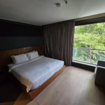 ランスアン通り沿いの立地がずっと気に入っていました。高級住宅街にある割にリーズナブルなホテルの一つです。ランスアン通り沿いの他の高級ホテルとは比べ物になりませんが、価格面でも他のホテルとは比べ物になりません。 清潔感は十分で、床もトイレもまずまずですが、鏡は埃っぽく、洗面台は経年劣化していました。清掃は必要ですが、バルコニーのドアは施錠できず、エレベーターは時々メンテナンスモードになります。内装はモダンですが、外装は手入れが行き届いておらず、塗装も剥がれていました。 ティーコーナーにはパーコレーターがあり、軽食とインスタントラーメンも少し用意されていました。 スタッフは親切で、裏庭の景色は癒されるような気分になります。リスや鳥、猫が歩き回っているのを見ることができます。都会ではなかなか見られない景色です。 きちんと整備されていれば、私にとって最高の滞在になると思います。