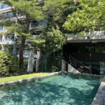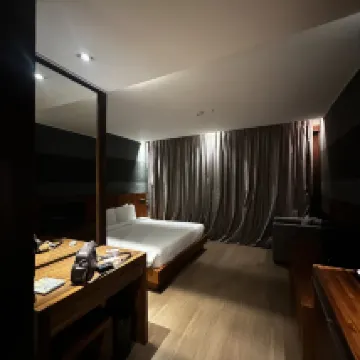 部屋は少し暗く、あまり明るくありません。オレンジ色のライトのせいでメイクが魅力的に見えません。ヘアドライヤーはありません。マットレスに髪の毛が付いていたので、掃除が行き届いていなかったようです。しかし、立地は便利で、BTSから1kmなので、簡単に行くことができます。近くにセブンイレブンもあります。プールは美しいですが、日陰がとても古く見えます。見た目が良いのは一つだけです。