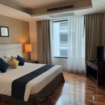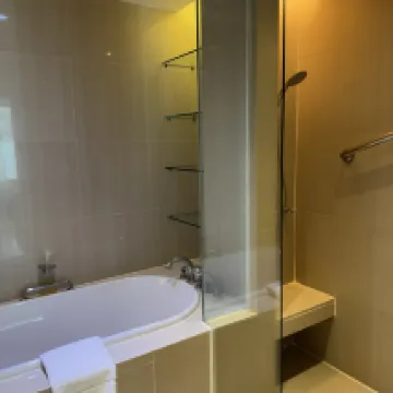 部屋は広くて快適でした。エラワン廟にも近く、周辺には食事やエンターテイメントが豊富で、多くの人がデリバリーサービスを利用していました。施設はメンテナンス中でプールは使えませんでしたが、ジムは良かったです。