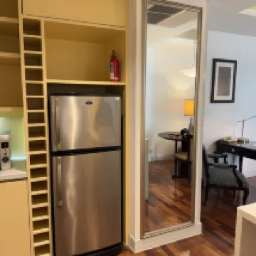このホテルはとても素敵です。 ただし、プールは現在改装工事中のためご利用いただけません。チェックイン前にホテルからご連絡いたします。また、1階にバーがあるため、低層階に宿泊される場合は騒音が気になるかもしれません。高層階に宿泊されることをお勧めします。 スイートにはキッチン、洗濯機、冷蔵庫が備わっています。冷蔵庫の底には無料のボトルウォーターが置いてあります。洗濯機には専用の洗剤が付属しており、右に4回回すだけで30分で洗濯できます。 ルームサービス(象の飾りなど)は事前にリクエストする必要があります。できればチェックイン前にメールでリクエストしてください(チップは任意です)。
