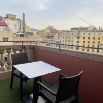 バルセロナの中心部に位置し、地下鉄や交通機関まで徒歩わずか数分です。周辺にはたくさんのレストランがあり、朝食から夕食まで、好きな食べ物を選ぶことができます。 設備: かなり充実 衛生状態: 非常に良い サービス: 良い