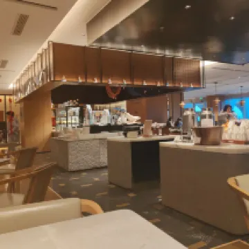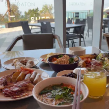 At the breakfast buffet we were greeted by hordes of waiters watching over a half empty buffet, at 09:30. Nearly no western food options and no cold cuts. After asking I was treated to a plate of two pieces of Camembert, hard cheese and some kind of milk cheese. Not the standard for a Sheraton breakfast.