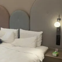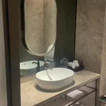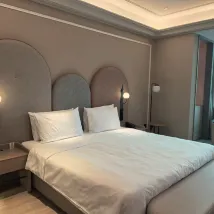 ホテルの設備は最高でした!客室は広々としていて明るく、新品同様の家具が備え付けられています。スマートなトイレとサーモスタットシャワーは実用的で、エアコンも驚くほど静かです。ロビーは爽やかな緑で溢れ、廊下のカーペットは清潔で柔らかです。窓からの眺めは遮るものがなく、共用エリアは心地よい香りに包まれ、全体的に清潔で上品な雰囲気です。本当に快適な滞在でした!フロントのスタッフはとても親切で、強くお勧めします!