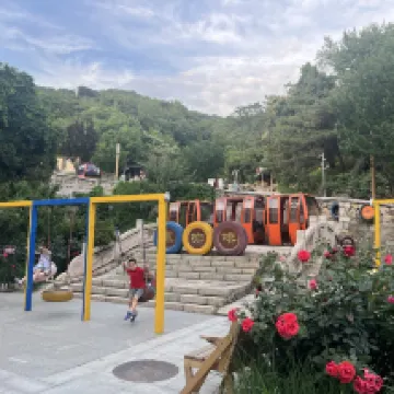 フロントの対応はとても良く、ロープウェイのチケット無料券と割引券をもらえると教えてくれました。美しい女性はとても優しく話しかけてくれ、ハンサムな男性はドアのカーテンを開けてくれました。子供たちは部屋を見て大喜びで、何度も登ったり降りたりしていました。外には滑り台と専用駐車場がありました。この日は宿泊客が少なく、夜はとても静かでした。外出時にロープウェイに乗り、数段上のケーブルカーで上まで行けます。夜に万里の長城を訪れるのに、並ばずにとても便利です。翌日もすぐに万里の長城に行くことができます。おすすめです。