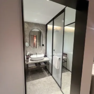 ホテルのロビーは広々としていて明るく、居心地が良いと感じられます。装飾は精巧で豪華です。フロントデスクのスタッフはフレンドリーかつプロフェッショナルで、すぐにチェックインしてくれました。 部屋は温かみのある装飾が施され、明るい照明が備わっている。ベッドは適度に硬く、寝具は清潔で柔らかいです。バスルームはウェットエリアとドライエリアに分かれています。部屋は防音対策もしっかりされており、夜もとても静かです。