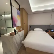 立地:大悦城ショッピングモール内にあり、文句なしの便利さです。1階から直接モールに繋がっているので、北京でのショッピングや観光、どこへ行くにも非常にアクセスしやすく、旅行にも出張にも最高の場所だと断言できます。 衛生面:部屋はとても清潔に保たれており、日当たりも良く明るかったです。 サービス:スタッフの方々の対応はとても親切で丁寧でした。