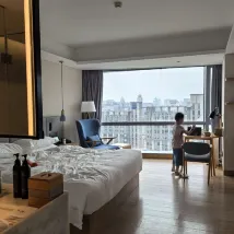 ホテルは多くのショッピング街やレストランに非常に近く、家族の集まりでは近くのミシュランの星を獲得したレストランで食事をしました。 部屋は広く、街の景色が見渡せ、ベッドも快適でした。Shen 小沈のスタッフは、Didiの予約を手伝ってくれてとても親切でした。案内もしてくれました。 私たちが訪れた時はコミュニティプールで、子供たちのクラスで使用されていたため、プールは利用しませんでした。 市内中心部に非常に近いです。唯一改善が必要な点は、私たちが泊まった部屋に少しタバコの臭いがしたことです。