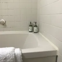 房間雖不大,但設施齊全。日式一體浴室有浴缸、沖洗馬桶和空氣淨化器,泡個澡、洗去一天疲勞,感覺整個身心都放鬆了。窗外能看到附近街景,夜晚時亮馬河的燈光閃爍,讓人忍不住想沿河散步。