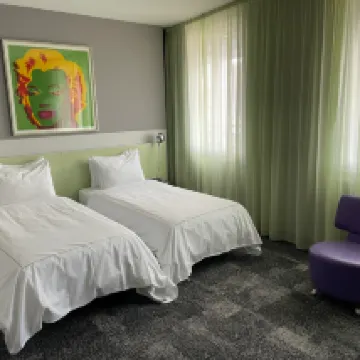 ベルリン展示場へのアクセスは大変便利で、鉄道駅までは徒歩10分で3駅、市内中心部までは電車で約20分です。ホテルの客室は基本的に設備が整っており、清潔です。朝食もよかったです。部屋には基本的にケトルとヘアドライヤーが備わっています。