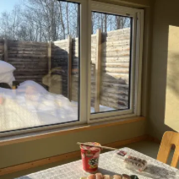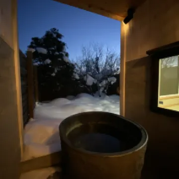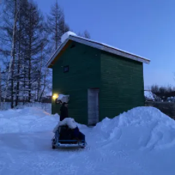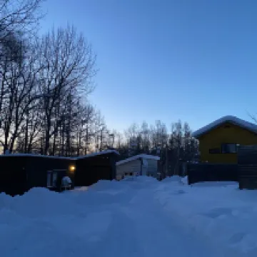 宿泊施設は思っていたよりもずっと良かったです。冬に行ったので雪がとても厚かったです。ヴィラは2階建てで、1階にはキッチンがあります。ダイニングエリアがあります。裏庭エリアもあります。上の階は寝室です。寝転んで雪を眺められる大きな窓があります。冬に行くとカートに荷物を載せて自分で押さないといけないのですが、楽しいです。宿の雰囲気も良いです。しかし、車を持っている人にはより適しています。市内からかなり遠いからです。