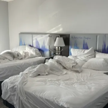 ホテルが安い 展覧会期間中は街が高すぎる レンタカーを借りて20分ほどAHRに行きました。 雪が降ると本当に寒いです ホテルの設備は全体的に経済的です そこにはほとんどが黒人が住んでいます 隣や部屋の向かいの人々に会ったとき、彼らは皆小さな黒人の子供と大人でした。 とても騒がしくて、真夜中過ぎまで眠れませんでした。 廊下でおしゃべりしながら、何度もフロントに電話して苦情を言いましたが、だめでした。 キーホテルの警備員は今も廊下で黒人と雑談しています。とても腹が立ちます。 ホテルの部屋は清掃前に予約が必要です 近くにレストランがいくつかあるので歩いて行けます 朝食の選択肢はあまりなく、エッグパンケーキとヨーグルトと少量のフルーツだけでした。 ホテルにはプールもあります