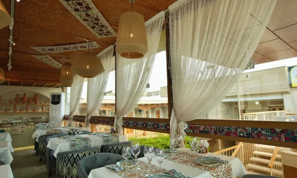 最寄りの空港はブハラ国際空港で、ホテルからは約ホテルから車で約17分(5.8km)です。所要時間は交通手段や道路状況によって異なりますので、ご利用の際は最新の交通情報をご確認ください。ザルガロン ブティック ホテルから最寄りの空港まではどのくらいですか?