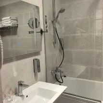 このホテルは4つ星の基準を全く満たしていません。エアコンは弱すぎてほとんど効かず、部屋は蒸し暑く、常に不快な臭いが漂っていました。窓を開けることは不可能で、外には蚊が溢れていました。そのため、換気もできませんでした。 トイレの便座は黄ばんでいました。掃除はされているように見えましたが、古くて不衛生な印象でした。全体的に、部屋は古びた印象でした。 立地は街の中心部に近いと書かれていたので良さそうですが、実際には急な坂の頂上にあります。徒歩で旅行する人は満足できないでしょう。 朝食は期待外れでした。部屋は狭く、混雑していて、騒がしかったです。子供が多く、非常に騒々しく、落ち着いた雰囲気はありませんでした。コーヒーは飲めませんでした。おそらく今まで飲んだ中で最悪でした。ベッドは?狭すぎて寝心地が悪かったです。 唯一の良い点は、ホテルのすぐ隣に小さな無料駐車場があることです。 結論:このホテルは4つ星には到底及びません。快適さ、静けさ、そして質の高いホテルを期待するなら、間違いなく他のホテルを探すべきでしょう。