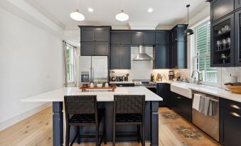 This elegant home features five comfortable bedrooms with room-darkening shades, each boasting timeless decor, modern details, and high-end furnishings, so you can enjoy a relaxing sanctuary after long days in downtown Charleston.