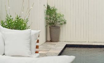 ✹ Private courtyard with sofa and pool-side cushions
