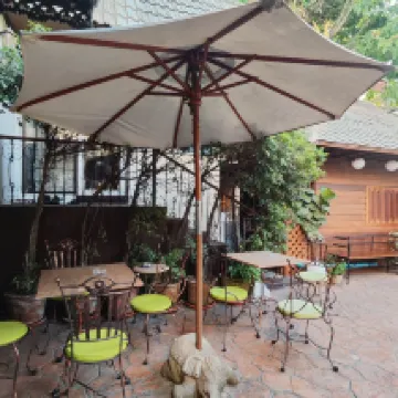 細部までこだわってデザインされた美しい古いマナーハウス、たくさんの古い高品質の木製家具やアンティーク品、まるで美術館のようで、居心地の良いプールエリアがあります。屋根の下にあるスタジオはとても広々としています。隣には素晴らしいカフェがあります。大通りに面していますが、騒音は控えめです。