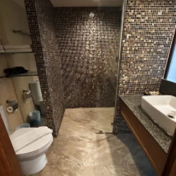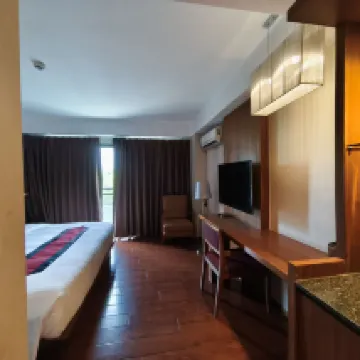 便利なロケーション ホテルは少し古いですが、改装されていてきれいです。 ヘアドライヤーなどのアメニティも完備しております。 バスルームには新しい衛生器具が備え付けられており、シャワーがあり、水圧も強く、パイプが詰まることはありません。 唯一の欠点は、テレビのリモコンが押しにくく、遅延することです。 エアコンはオンとオフを切り替える必要があるほど寒いですが、少しうるさいです。 全体的に、Trip で予約した数百バーツの料金としては予想以上に良かったです。本当に値段に見合う価値がありました。