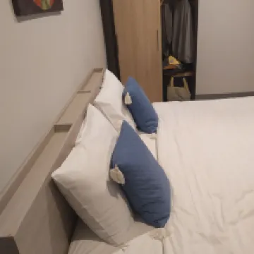 ベッドはとても硬いです。ラチャパット大学の近くにあり、場所が良く、見つけるのは難しくありません。部屋はまあまあでしたが、唯一の欠点はベッドが硬かったことです。タオルはお一人様につき1枚のみとなります。シャンプーとシャワークリームがあったのに、ヘアタオルが全くなかったのが残念でした。ヘアコンディショナーなしヘアドライヤー、バルコニー、靴が備わっています。しかし部屋には立ち鏡がありませんでした。小さな鏡がありますが、あまり便利ではありません。バスルームでは、シャワーの出があまり良くないようです。しかし、価格は大丈夫です。高価ではない、全体的に良い唯一の欠点は、ベッドが硬すぎることです。